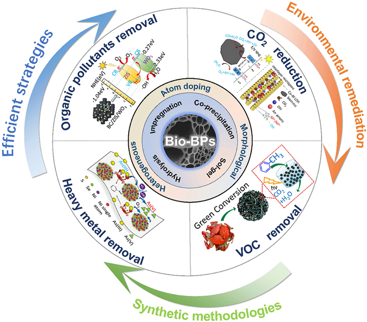 With the accelerating industrialization, environmental pollution has become increasingly severe. Photocatalysis, as a solar-driven advanced oxidation process, has emerged as a promising solution for environmental remediation. Biochar, with its unique surface properties, tunable functional groups, excellent conductivity, and chemical stability, serves as an ideal support for photocatalysts. The integration of photocatalysts with biochar forms biochar-based photocatalysts (Bio-BPs), which synergistically enhance functional groups, porosity, surface active sites, and catalytic performance. This review systematically summarizes the synthesis methods of Bio-BPs to guide optimal preparation strategies, enumerates the advanced characterization techniques, explores modification mechanisms and their effects on photocatalytic activity, examines applications in removing both aqueous pollutants and atmospheric pollutants and discusses sustainable prospects for the future development of Bio-BPs to provide guidelines for designing high-performance biochar-based materials for practical environmental applications.