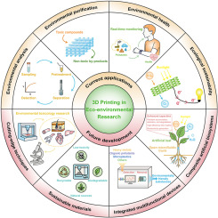 Three-dimensional (3D) printing technology is emerging as a transformative tool in eco-environmental research. It innovates environmental analysis technologies, augments environmental purification, alleviates environmental health risks, and fosters ecological sustainability. Nevertheless, most current applications of 3D printing in the eco-environmental domain remain largely confined to laboratory testing stages, with limited translation to large-scale and real-world deployment. In this viewpoint, we review recent progress and critical challenges within this field, while providing strategic perspectives for its future trajectory. We highlight the imperative to integrate cutting-edge 3D printing techniques into eco-environmental research, advance sustainable printing materials, and develop integrated multifunctional devices for environmental monitoring and remediation. Furthermore, we introduce a pioneering conceptual framework: self-sustaining composite artificial biosystems. Here we envision it as a bionic tree, a 3D-printed biohybrid construct that integrates an open microfluidic scaffold with engineered living materials to autonomously maintain biological activity through self-driven internal mass transport. While emulating key morphological and physiological features of natural plants, the bionic tree transcends its natural analogue by enabling synthetic biology-guided environmental remediation, CO2 sequestration, and energy production. We provide an in-depth analysis of the rationale behind this concept, assess its technical feasibility, and present a developmental roadmap for this emerging research direction. Our insights are poised to amplify the contribution of 3D printing to the eco-environmental sector, thereby facilitating environmental pollution control and sustainable development.